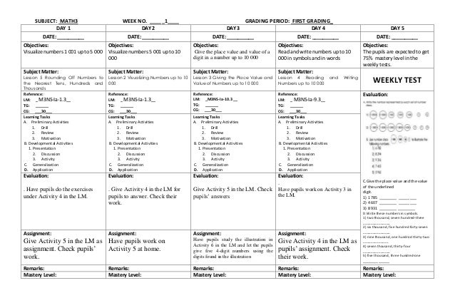 Grade 1 Daily Lesson Log Dll For Sy 2019 2020